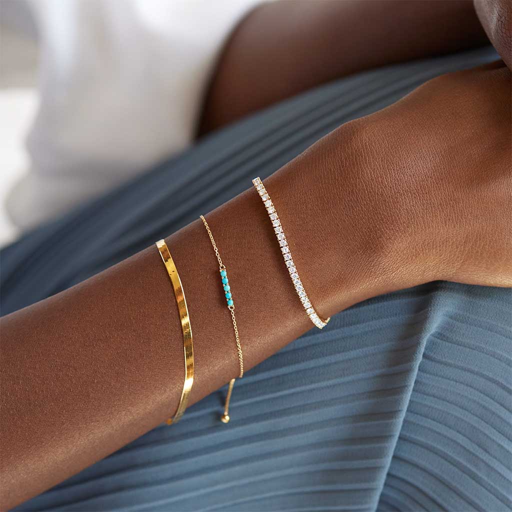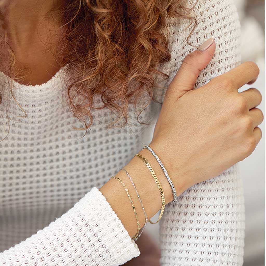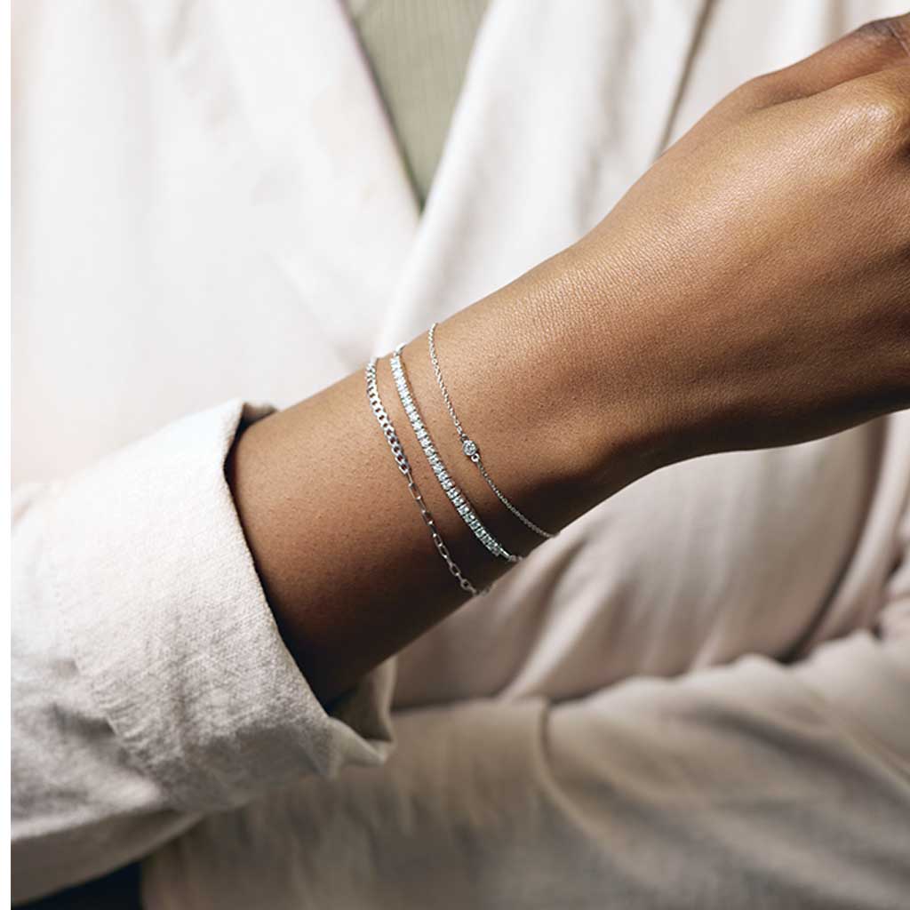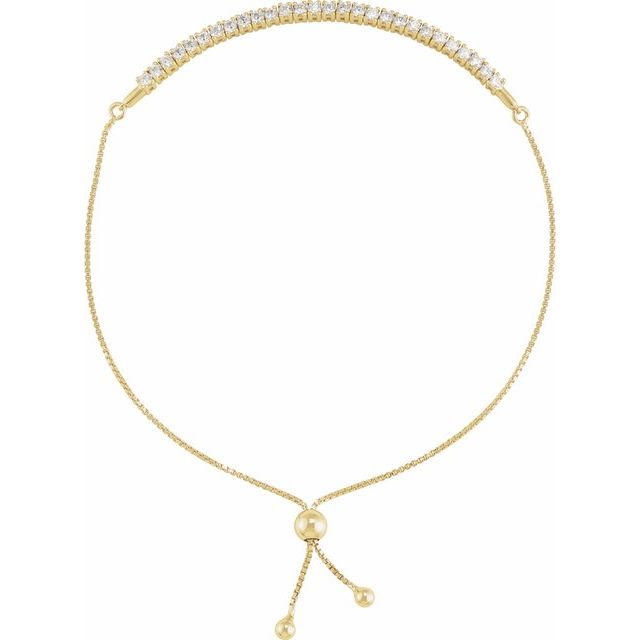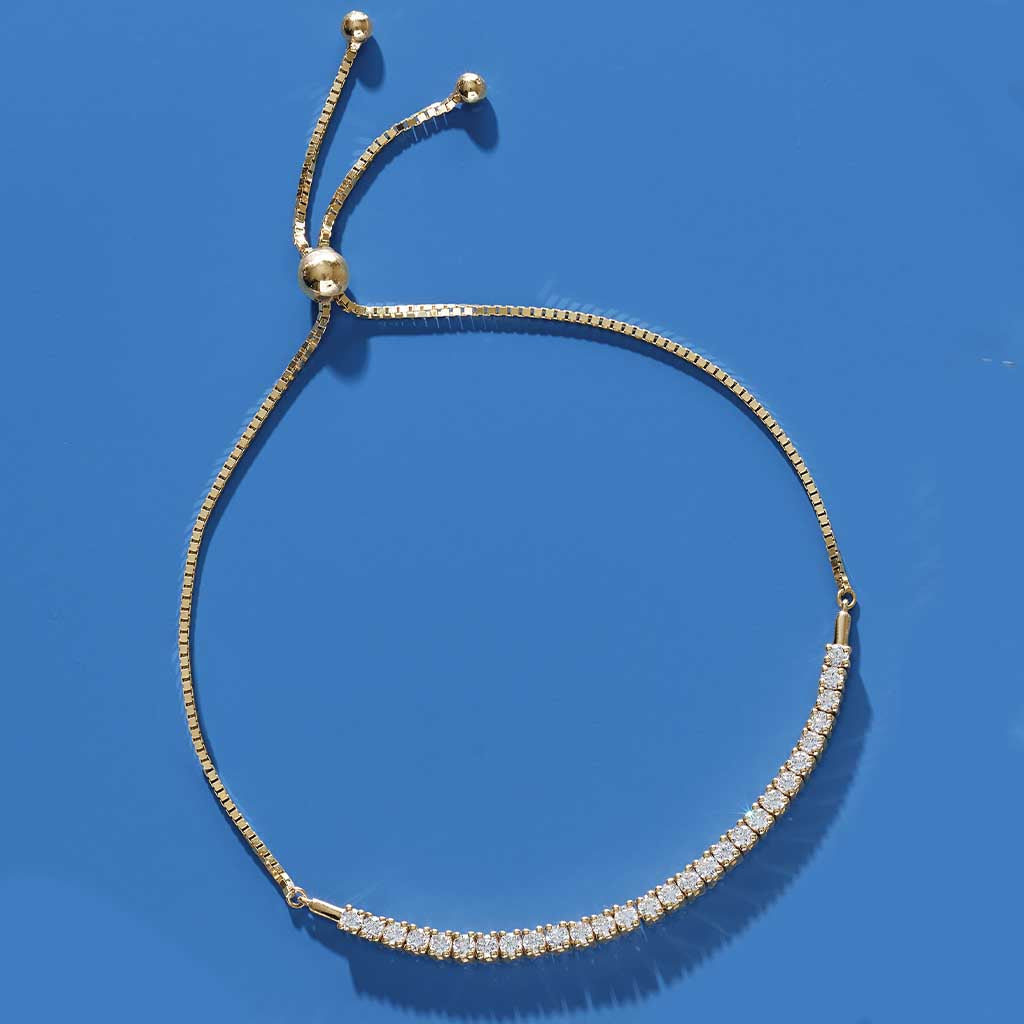 This bracelet features 1 CT of perfectly match round diamonds each set in a perfect line finished with a bolo catch for a flexible fit.