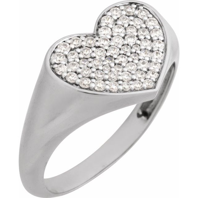 Shine bright with this diamond pave heart ring. A shimmering heart centerpiece makes it a must-have for anyone who loves loveÑand a little extra sparkle.