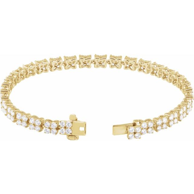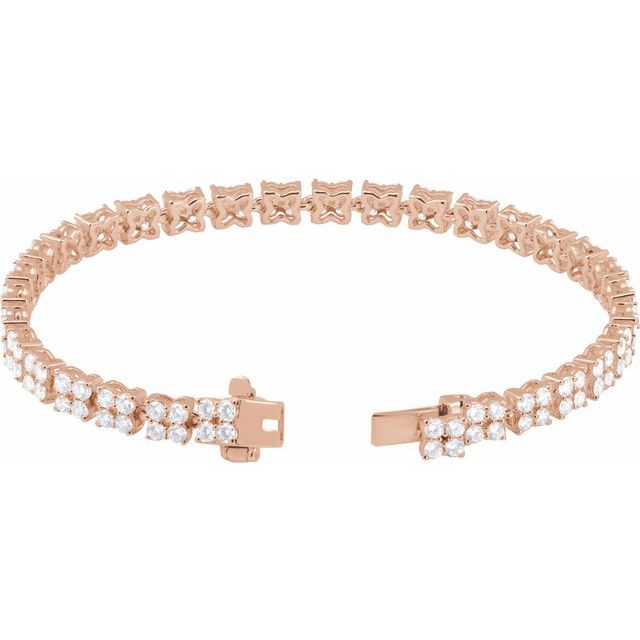 This bracelet features 128 (5 1/3 CT) perfectly match round diamonds each set to create a floral link.