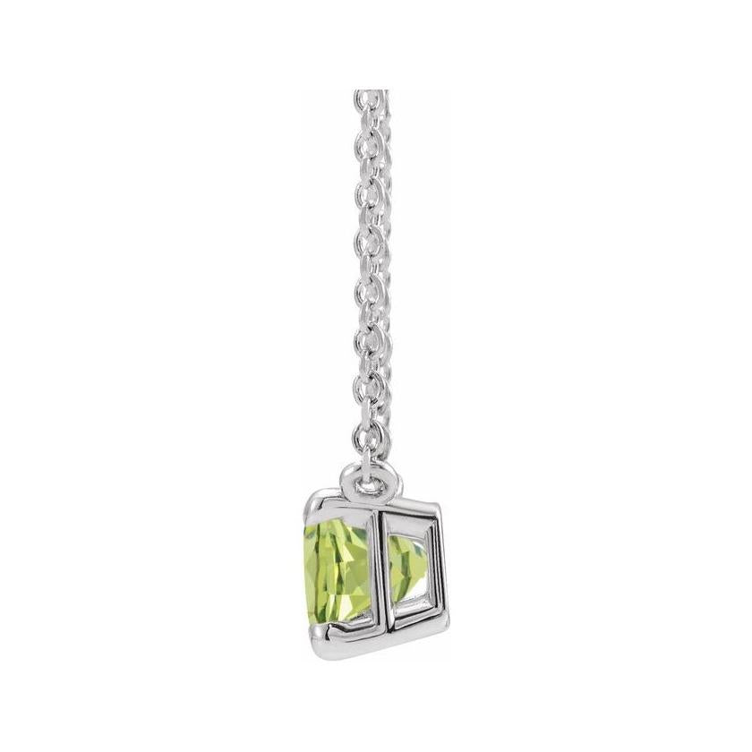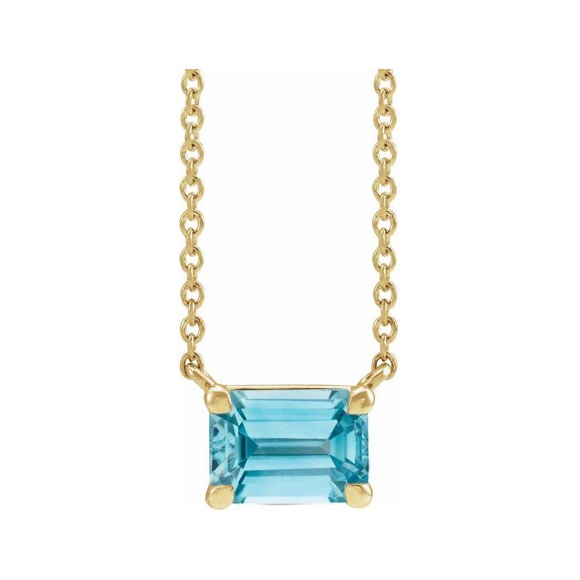 A personalized emerald-cut birthstone necklace featuring a 5x3mm gem on an 18" gold chain. Ethically made and perfect for meaningful gifting.