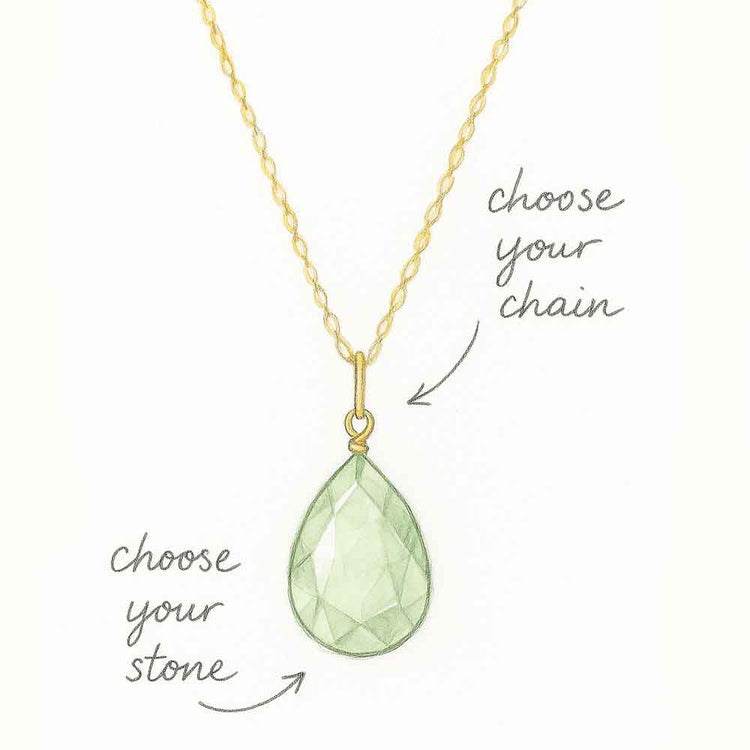Design your own with our intuitive jewelry builder. Select a gemstone that marks a birth month, honors someone special, or simply brings you joy. Then choose your chain and metal finish to create a personal piece with effortless elegance.