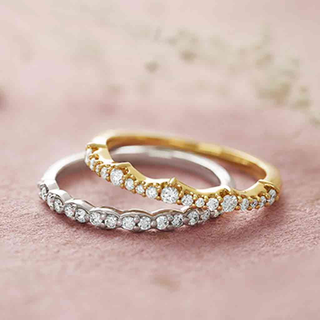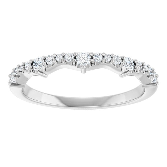 A mix round diamond sizes combine to create a cavetto diamond profile. This ring features ethically sourced diamonds set in recycled metal, handcrafted in the USA.