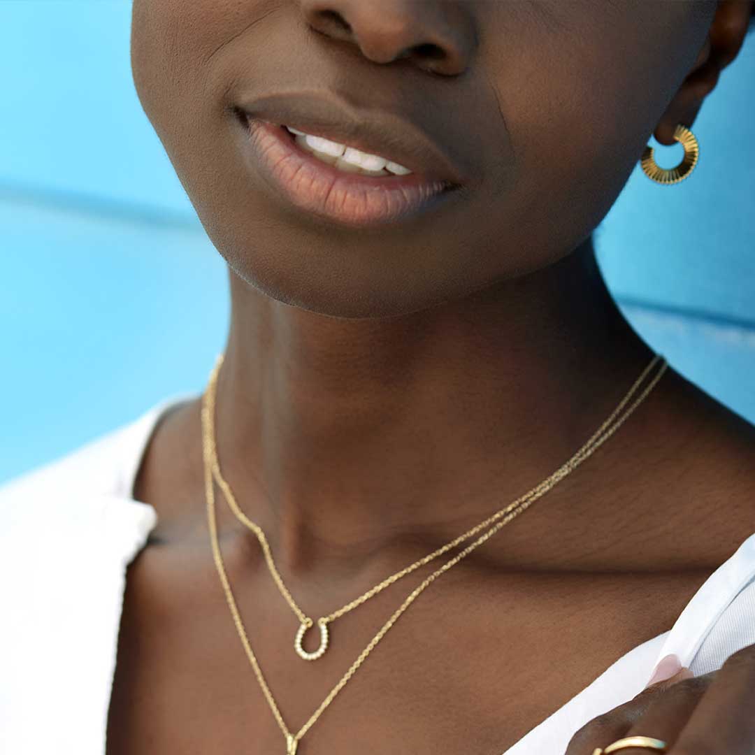 Each necklace is crafted in solid 14K gold and set with hand-selected natural diamonds that curve softly into the horseshoe—an ancient symbol of protection, good fortune, and welcoming energy.