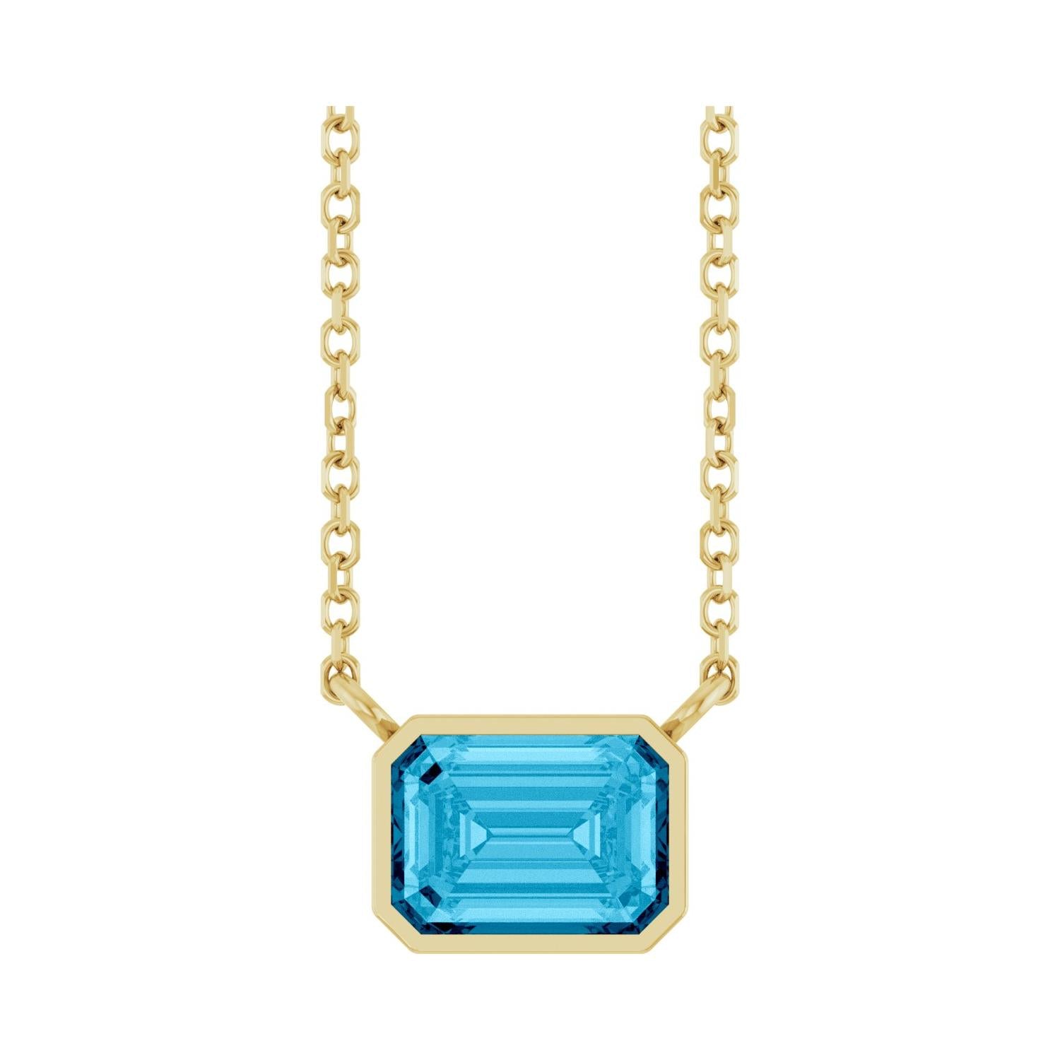 A subtle nod to individuality, the East West Emerald-Cut Birthstone Necklace is a modern heirloom, designed to honor the meaningful moments that define us. Anchored by a 7x5mm emerald-cut gemstone set horizontally—an aesthetic twist that feels as contemporary as it is timeless—this piece is equal parts elegant and personal.