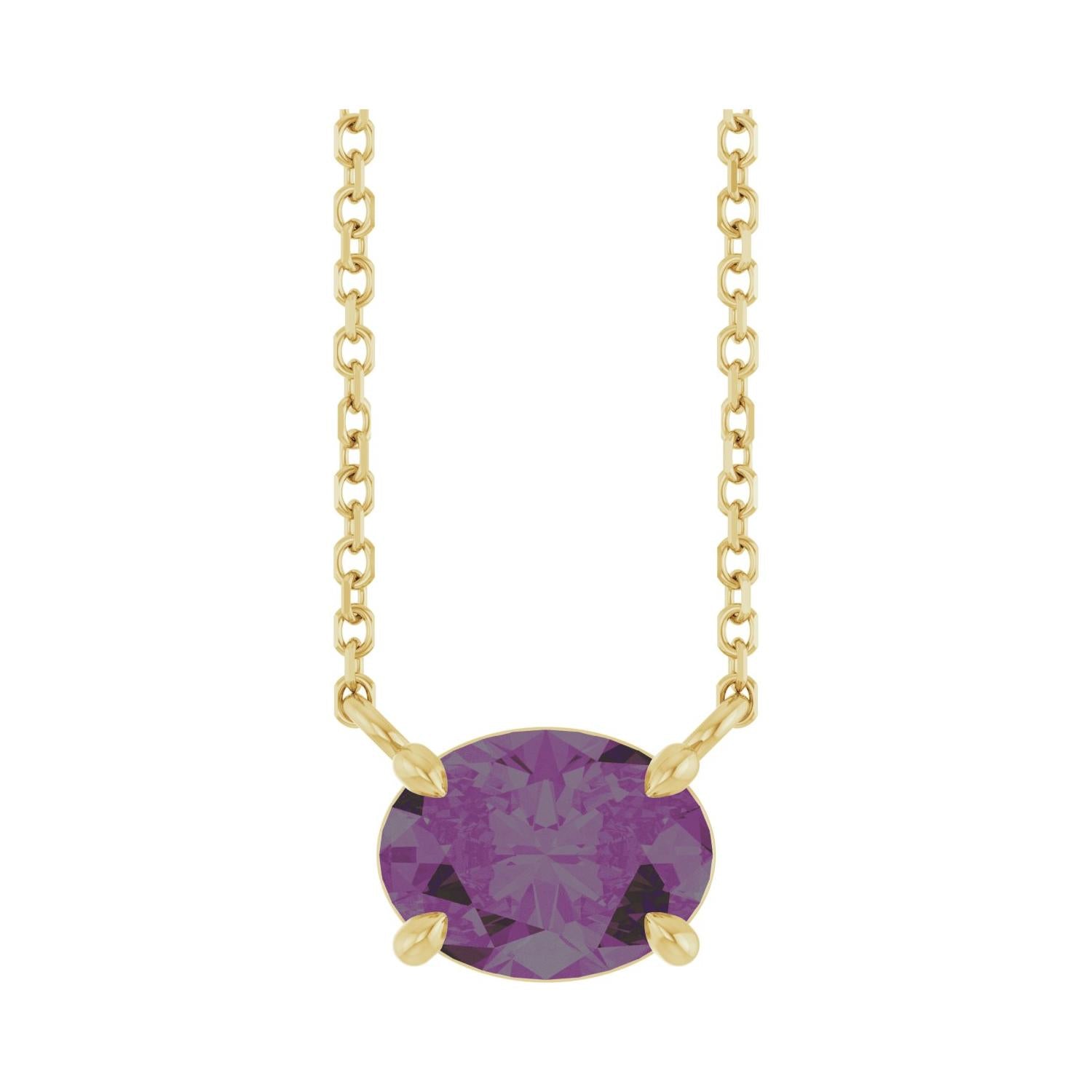 There’s something quietly powerful about a gemstone that’s chosen with intention. Our East West Oval Birthstone Necklace is a modern take on a classic solitaire—featuring an 8x6mm oval-cut birthstone turned sideways for a fresh, contemporary silhouette. Whether you’re marking a birthday, honoring a loved one, or simply drawn to the energy of a particular stone, this piece lets you wear meaning close to your heart. Available in 14K yellow, white, or rose gold—or sterling silver—each necklace is hand-crafted in the U.S. using recycled precious metals and ethically sourced gemstones. From deep red garnet to ethereal alexandrite, each gem is carefully bezel-set for a sleek, minimalist finish that layers beautifully or stands effortlessly on its own. Wrapped in eco-friendly packaging, it’s a thoughtful gift and a soulful keepsake. Perfect for birthdays, push presents, or as a signature everyday talisman.