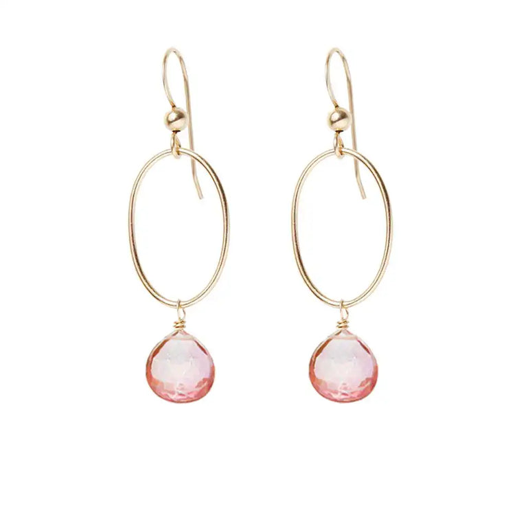 Pink Topaz Gemstone Hoop Earrings