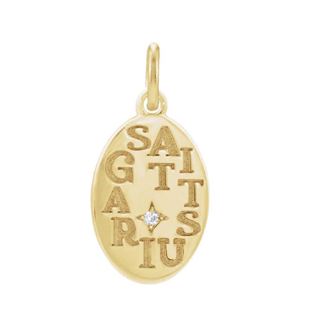 Our Sagittarius Engraved Zodiac Charm is made for the bold explorer, the restless dreamer, the seeker of truth. Featuring a hand-engraved Sagittarius glyph and a flush-set natural diamond, this charm captures your fire-sign energy in radiant, wearable form.