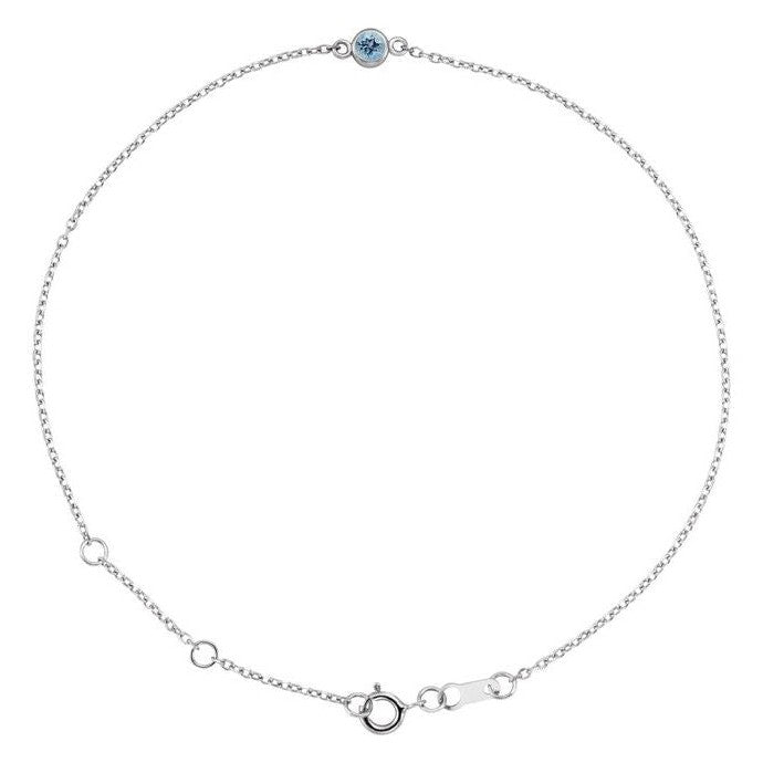 This aquamarine bracelet set in a sweet bezel is the perfect addition to your stack! Looking for a March birthstone gift? This bracelet will make you a gift-hero. With an adjustable length 6 1/2-7 1/2in. It will always be the perfect fit.