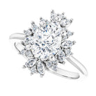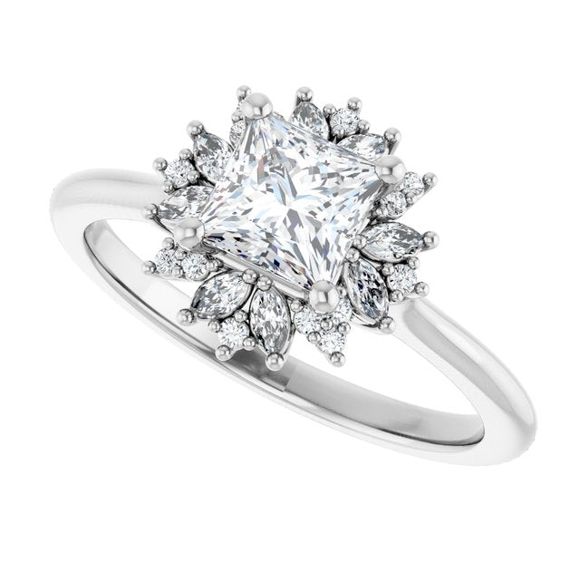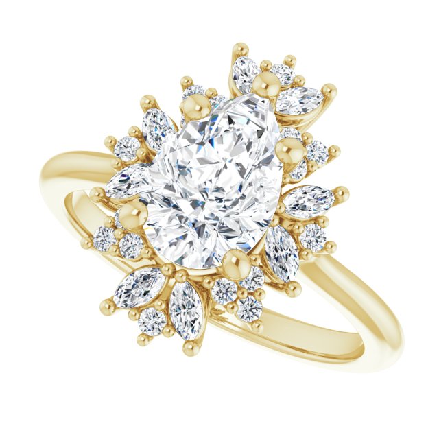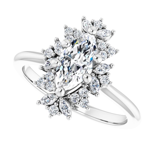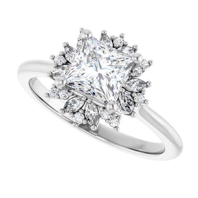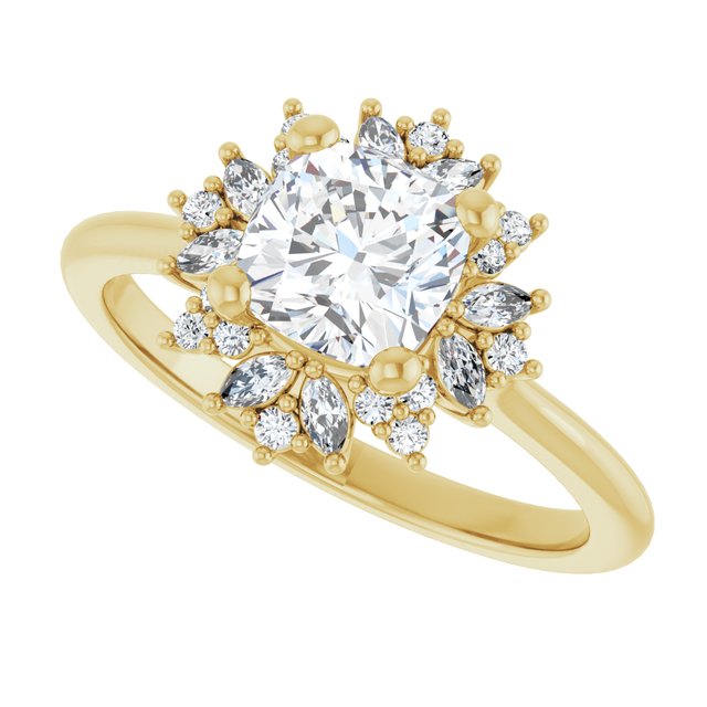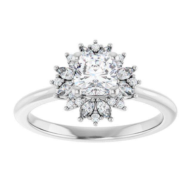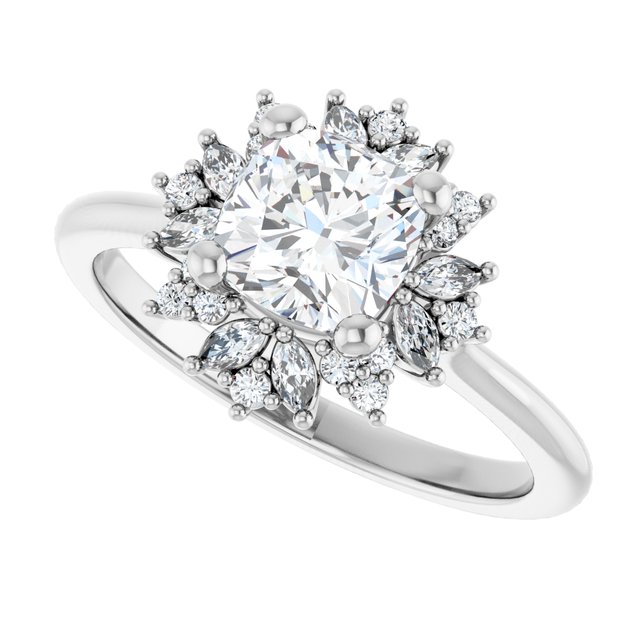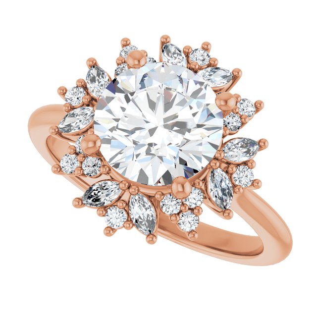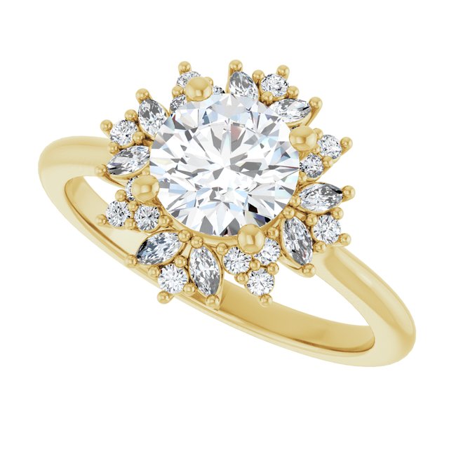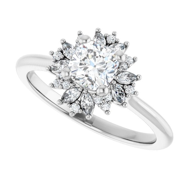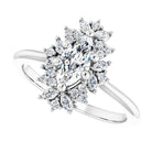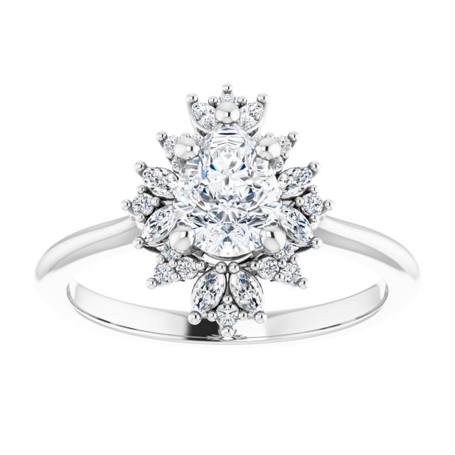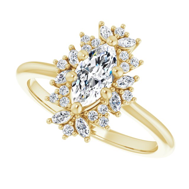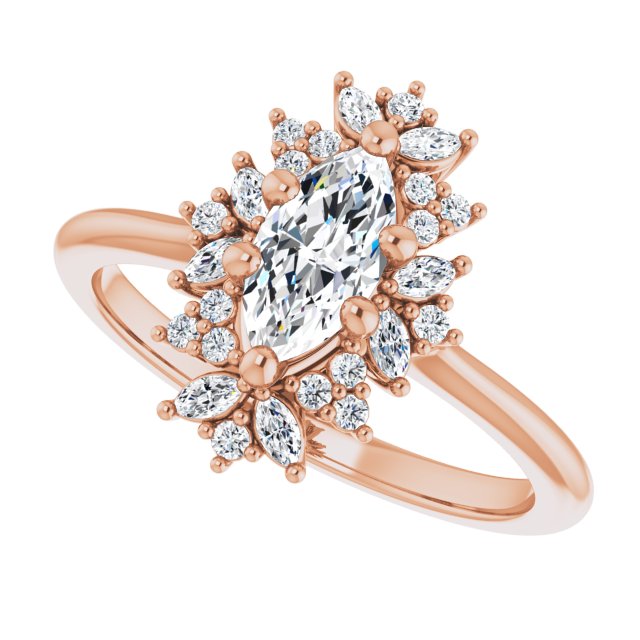 Select your Center stone to complete this setting. This setting features 3/8 CT round and marquise-cut diamonds that create a clustered halo.