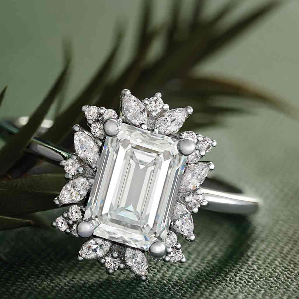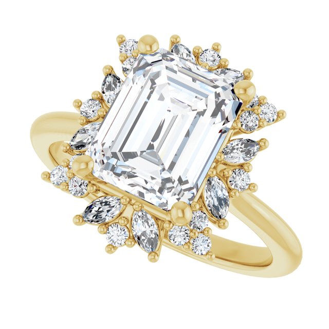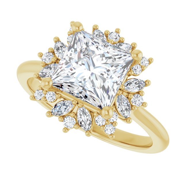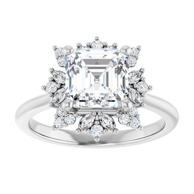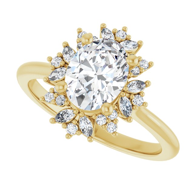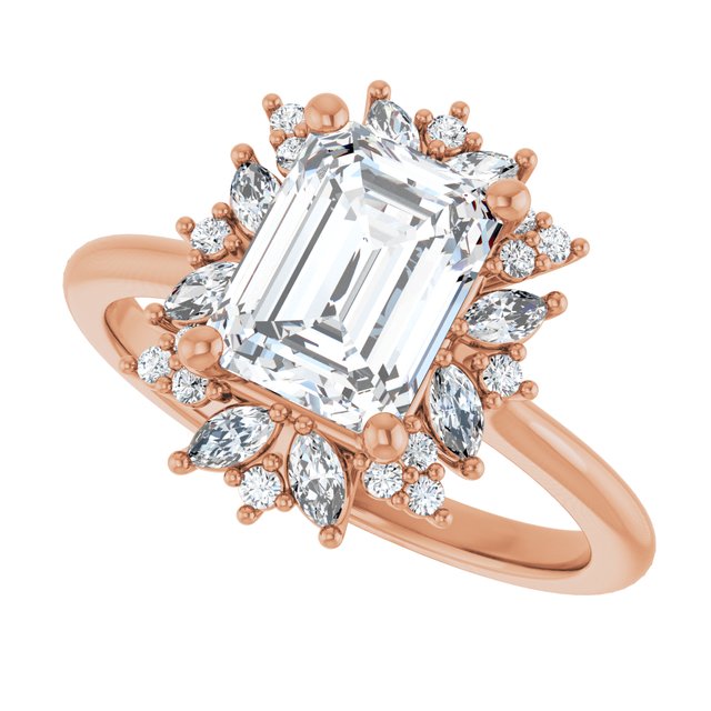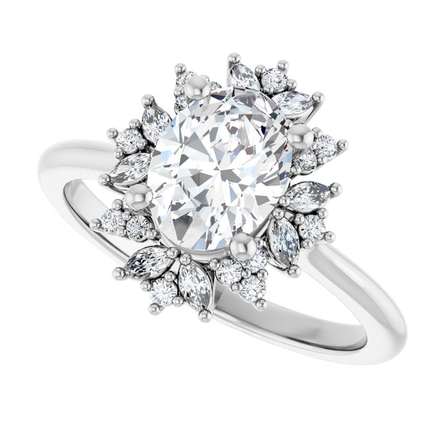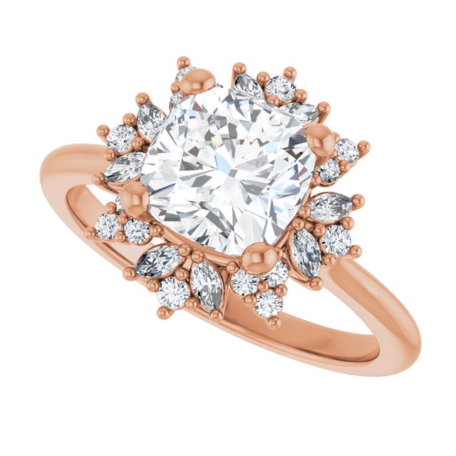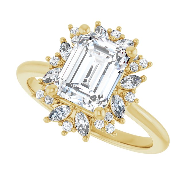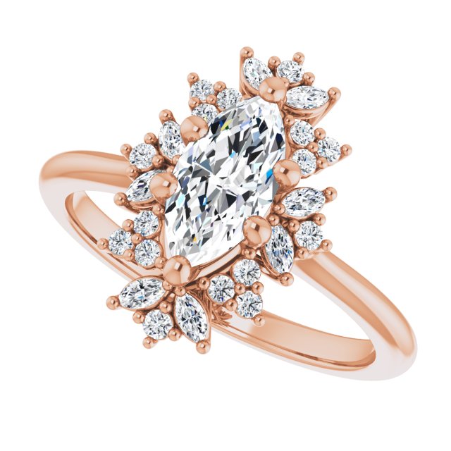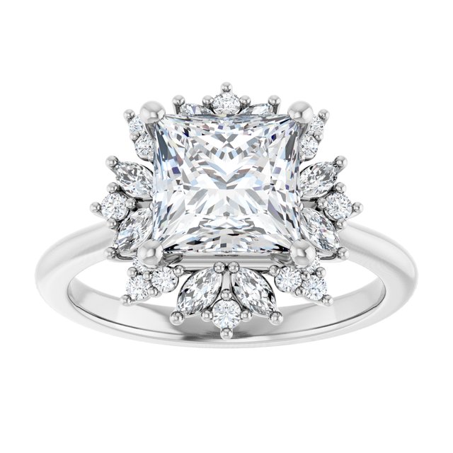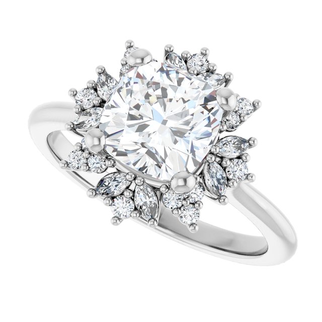 Select your Center stone to complete this setting. This setting features 3/8 CT round and marquise-cut diamonds that create a clustered halo.