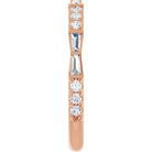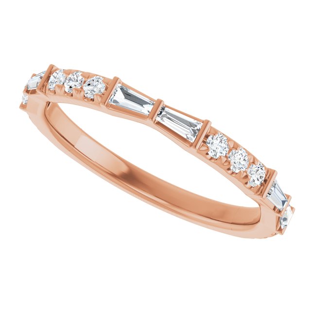 A mix of tapered baguettes and lovely round diamonds combine for a fluid look. This elegant design features ethically sourced diamonds set in recycled metal, handcrafted in the USA.