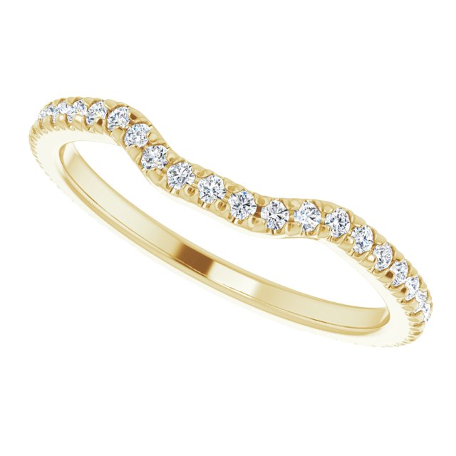 This band features 1/3 CT diamonds French-Set to sillouette the East-West Ring to Perfection.