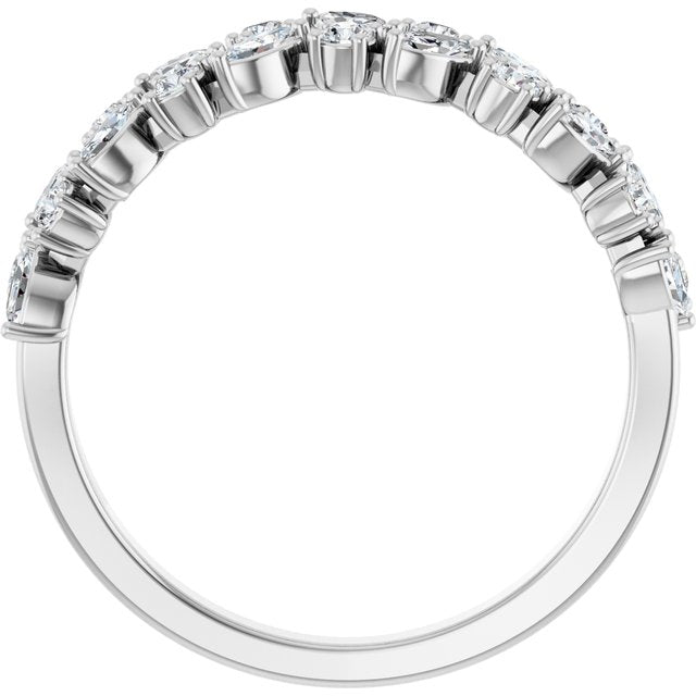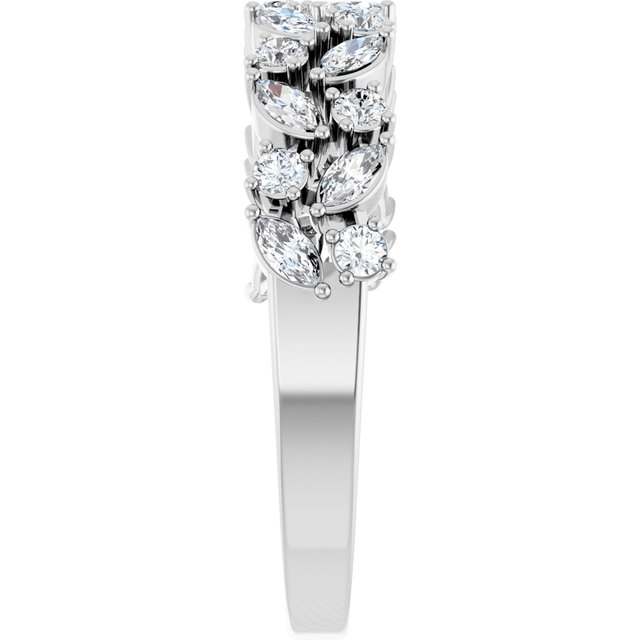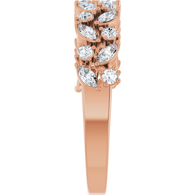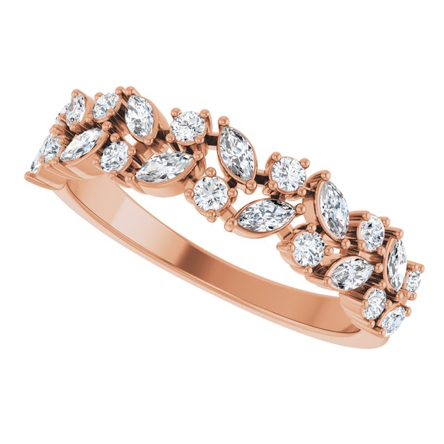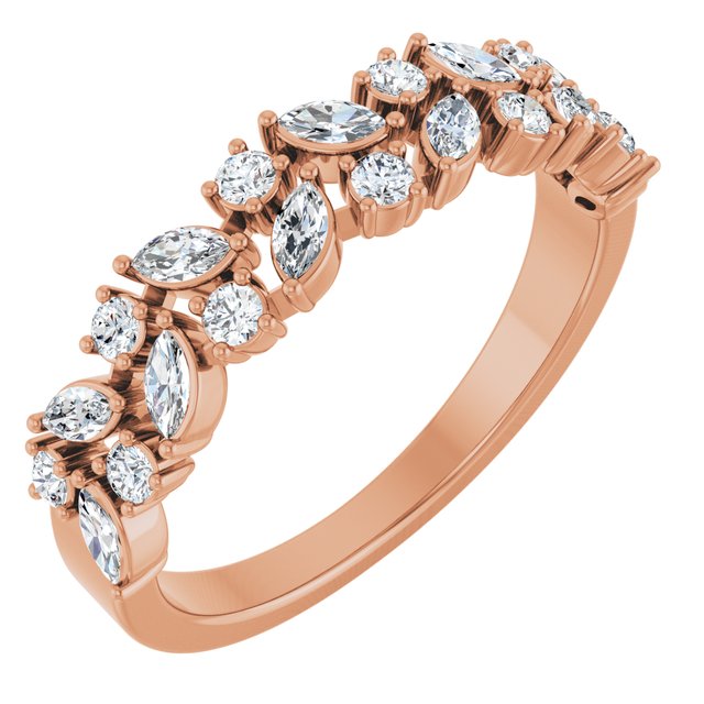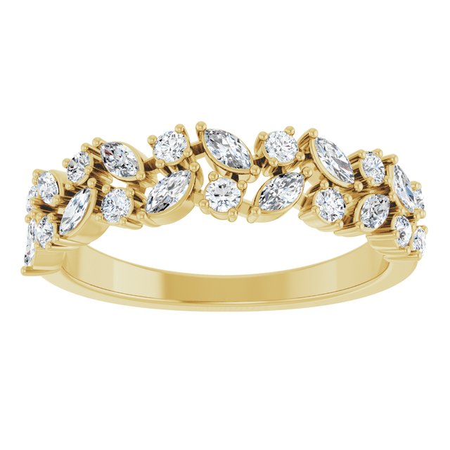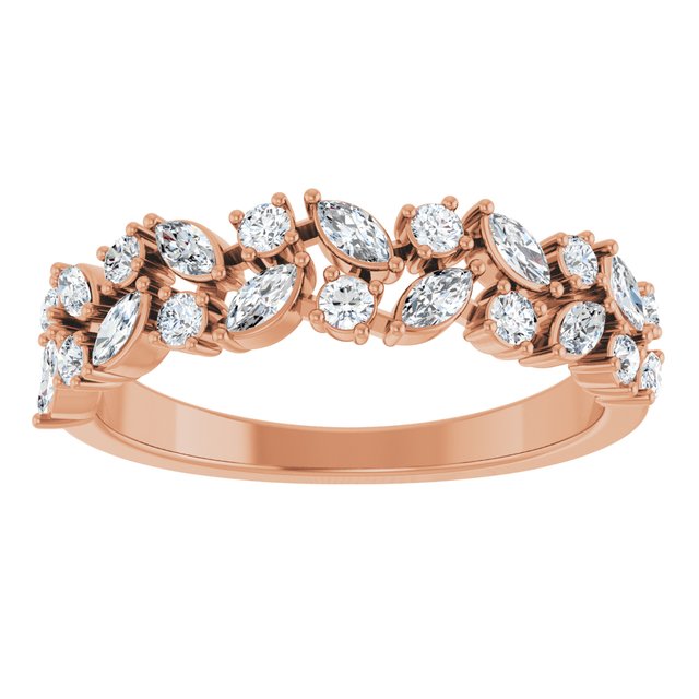 This diamond band features a. mix of marquise and round diamonds to create a garland look.