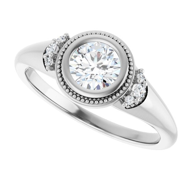 Milgrain Bezel-Set Diamond Engagement Ring Setting