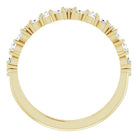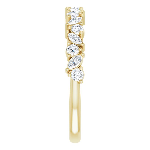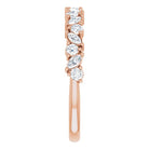 A mix of marquise and round diamonds combine to create an art nouveau diamond scroll. This ring features ethically sourced diamonds set in recycled metal, handcrafted in the USA.