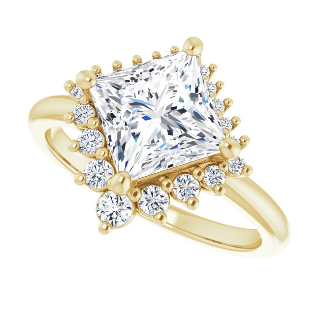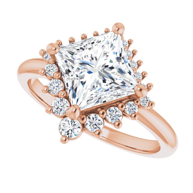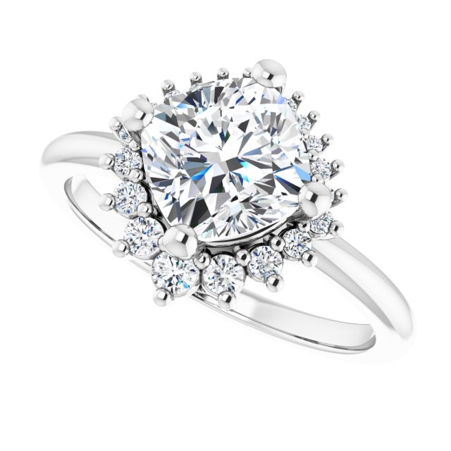 Select your Center stone to complete this setting. This setting features 1/5 CT round-cut diamond surrounding the center stone to create a saddle effect.