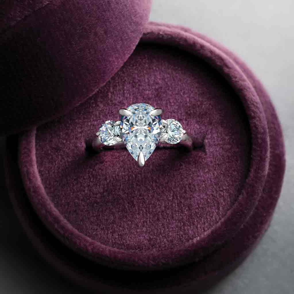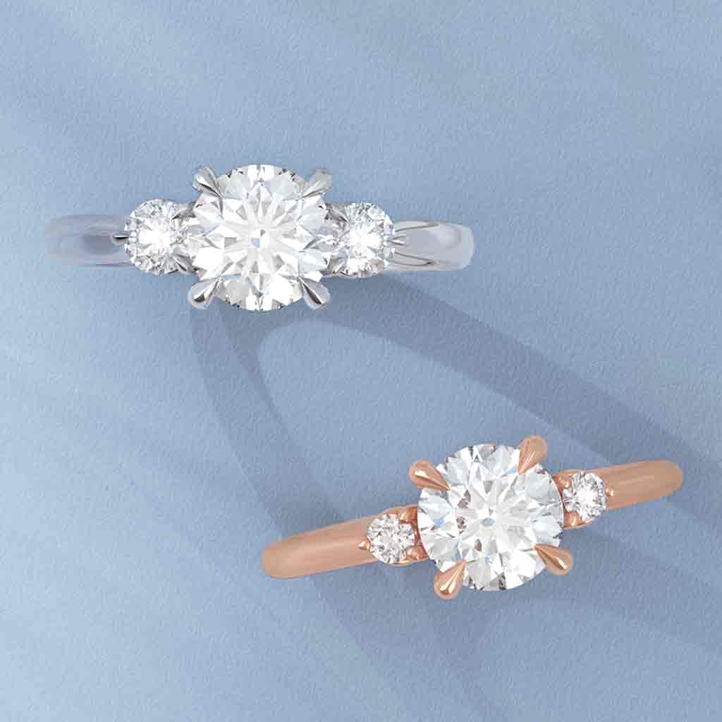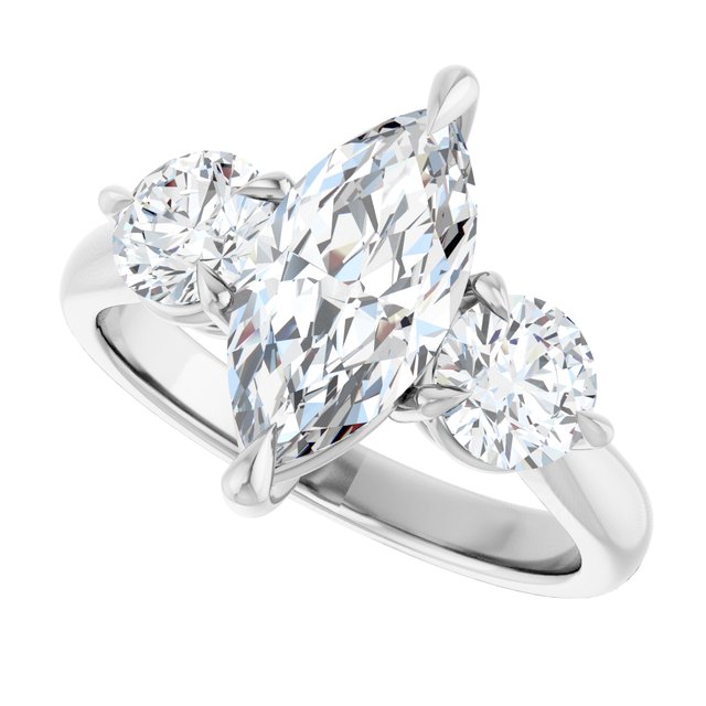 Three-Stone Engagement Ring Setting with Round Side Stones