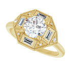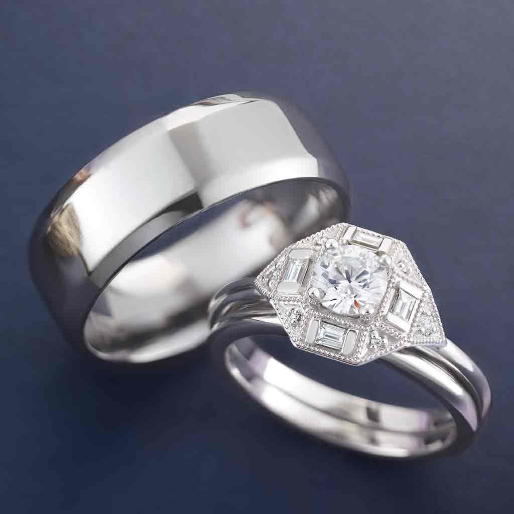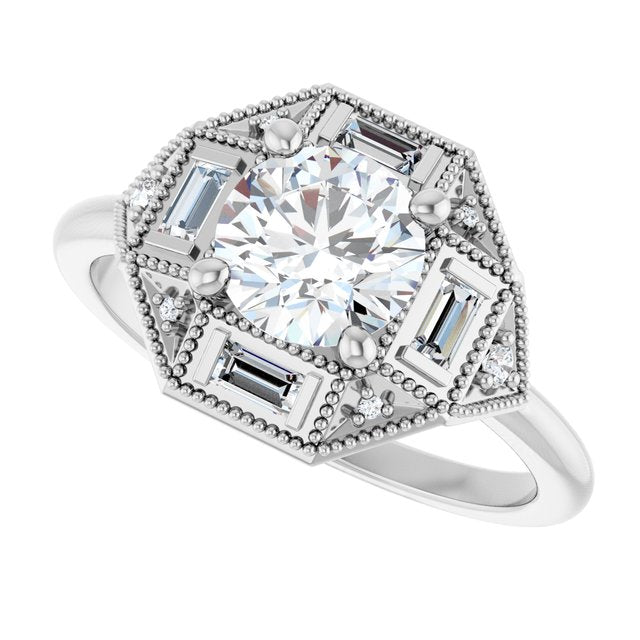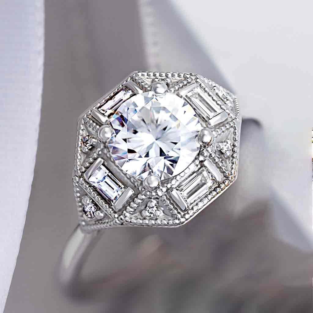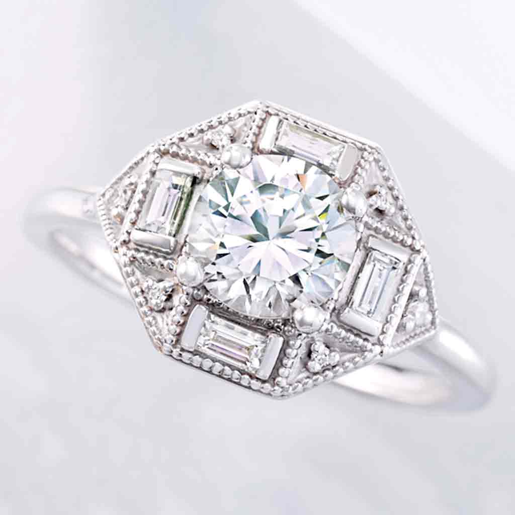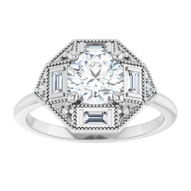 Center Stone Not included. This setting features 1/5 CT diamond side-stones set in a vintage inspired milrain setting.