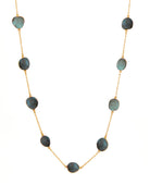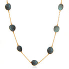 The Bezel-Set Gemstone Chain Necklace, perfect for the fashion-forward connoisseur! This stunning necklace is expertly crafted by hand in Steamboat Springs, Colorado using luxurious materials like 14k gold filled, sterling-silver and oxidized silver. Each one of the hand-cut gemstones is between 10-17mm. Whether you're looking for something special for you or a gift for someone else, the Bezel-Set Gemstone Chain Necklace will easily become a favorite.