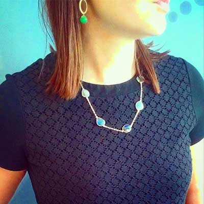This necklace is available in two lengths, 20in and 32in, and comes with a coveted gift box. Stones: All hand-cut gemstones 10-17mm