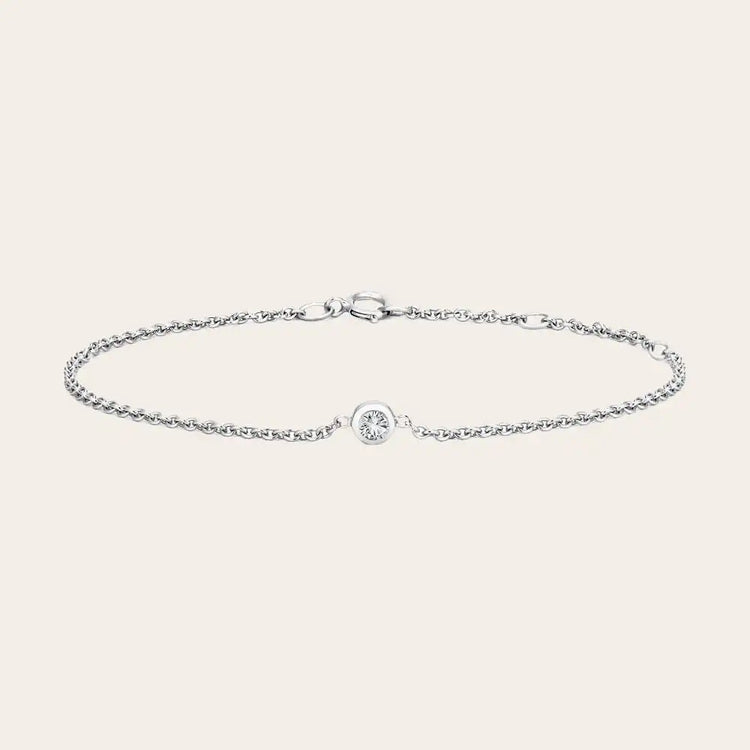 This diamond bracelet is crafted for those who value simplicity, symbolism, and thoughtful construction. At its center sits a 3mm AAA-quality diamond, bezel-set to protect the stone while maintaining a smooth, low-profile silhouette. The bezel enhances durability and allows the stone’s clean brilliance to remain the focus.