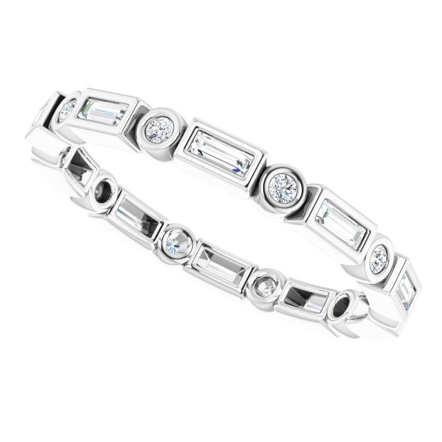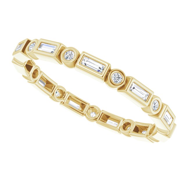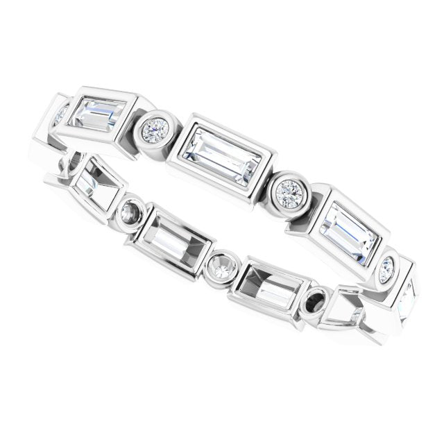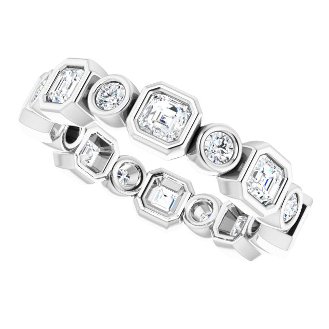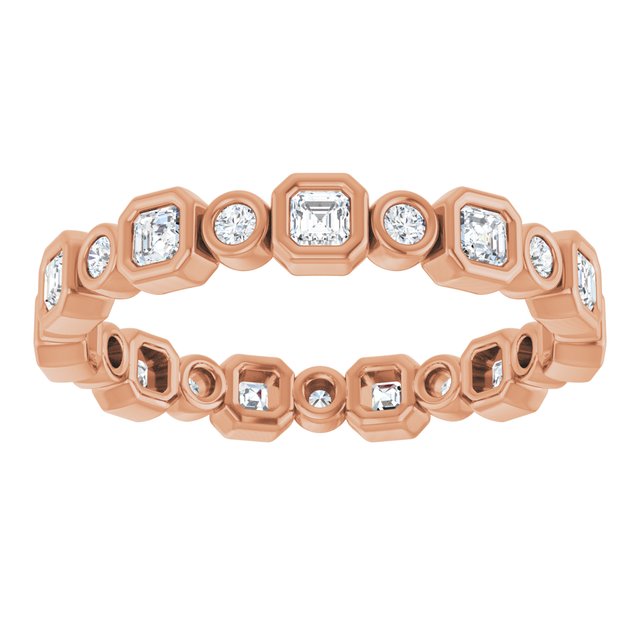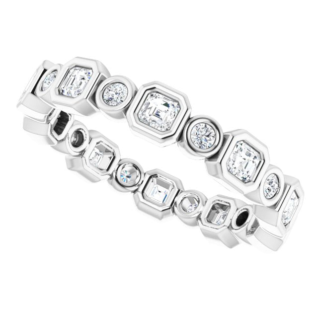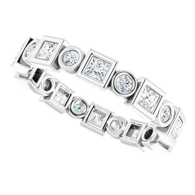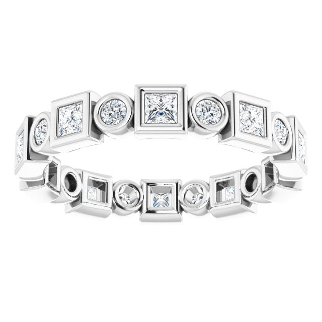 Select your accent diamond to complete this ring. This diamond eternity band features alternating diamond shapes.