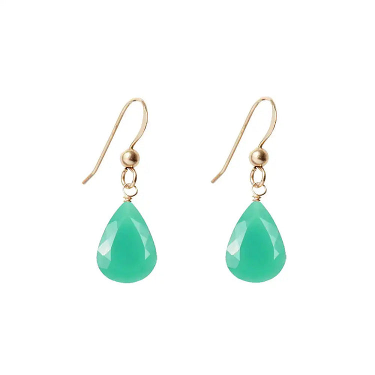 Polished, personal, and quietly radiant. These minimal Chrysoprase drop earrings feature a genuine Chrysoprase stone with a soft, light-catching glow - designed to move with you and elevate the everyday. A bright, meaningful choice for May birthdays, and a beautiful option for anyone who loves clean, wearable color.