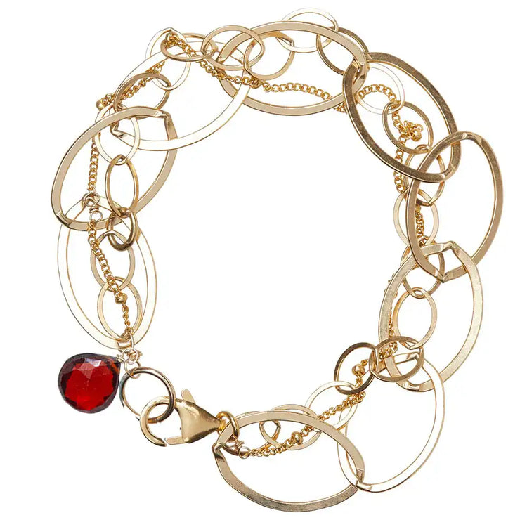 The deep wine red tone of garnet has long been associated with passion, protection, and enduring devotion. Wearing it on your wrist keeps that energy close throughout the day. The woven mixed-chain design adds visual interest and layered texture that makes this bracelet feel richer and more dimensional than a simple chain, while the 7.5-inch length stacks beautifully with bangles, watches, and other bracelets.