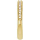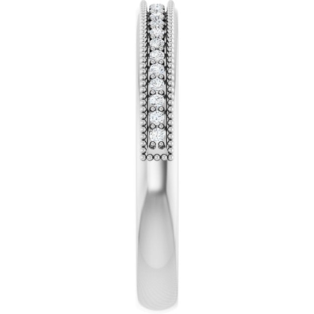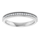 A whisper of sparkle, a halo of history. This milgrain diamond band pairs antique-inspired texture with modern craftsmanship for a ring you’ll reach for every day—stacked, solo, or paired with your engagement ring. Ethically sourced natural diamonds, recycled precious metals, and timeless charm—made with care in the USA.